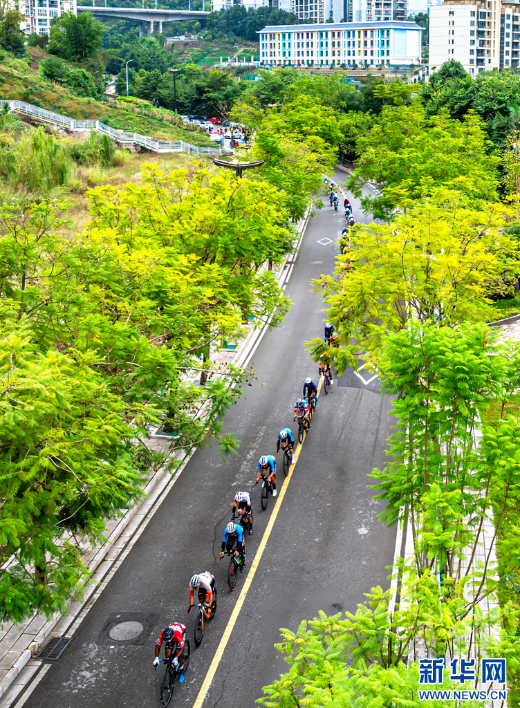 2024環(huán)昭通國(guó)際公路自行車賽(綏江—水富賽段)比賽現(xiàn)場(chǎng)(11月8日攝)。新華網(wǎng)發(fā)(曾三東 攝)
