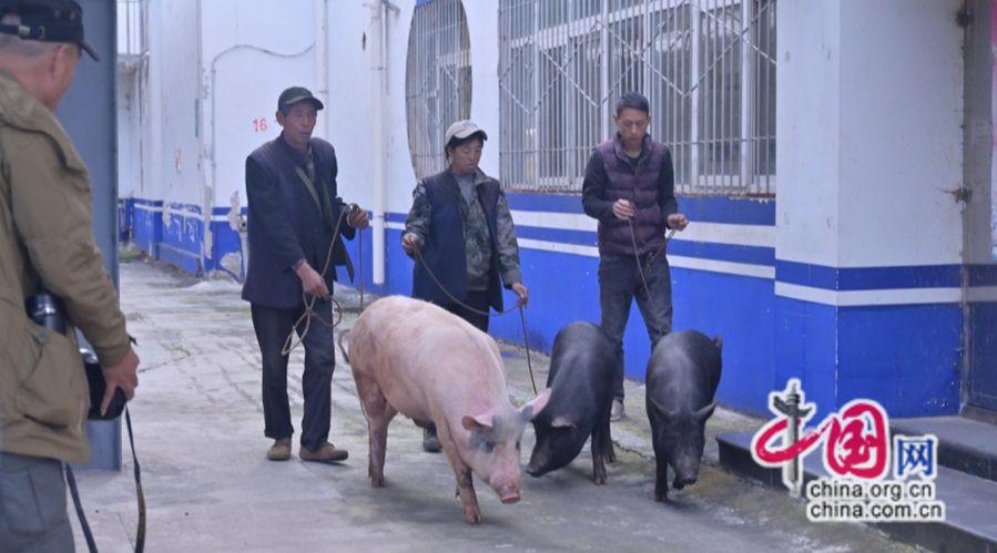 2024年11月20日,彝族老鄉(xiāng)在站臺上接豬。原波 攝