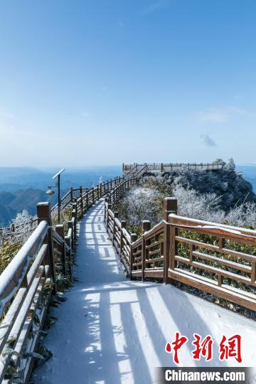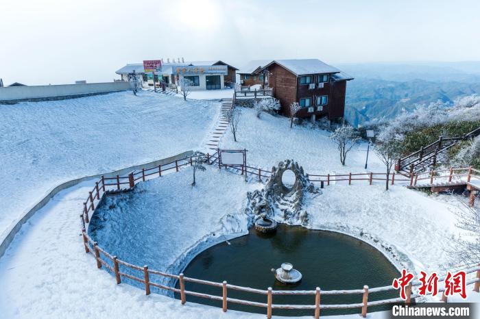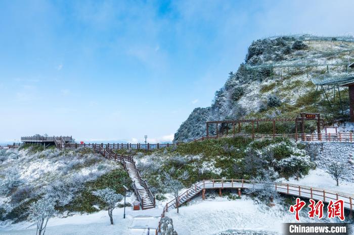 11月25日,受強冷空氣影響,四川省萬源市遭遇強降溫天氣。八臺山景區(qū)迎來了一場降雪,雪花紛紛灑灑,八臺山被裝點成了銀裝素裹的冰雪世界。鄭興平 攝