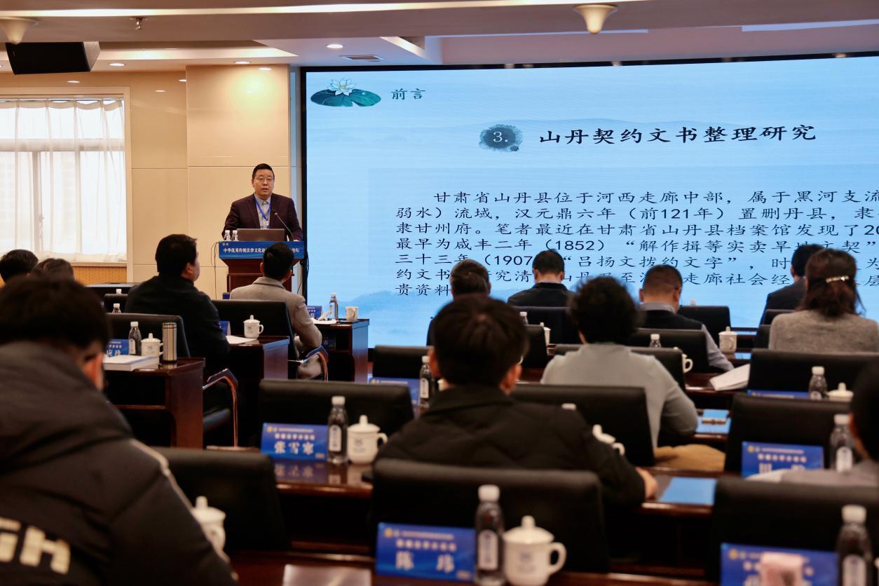 此外,河西學(xué)院歷史文化與旅游學(xué)院院長謝繼忠教授也在論壇上作了主旨報告,他通過新發(fā)現(xiàn)的20份山丹契約文書,深入剖析了清末甘肅山丹鄉(xiāng)村社會治理的特點及其啟示,為認識傳統(tǒng)社會整體面貌及其特點提供了新史料、新視角。