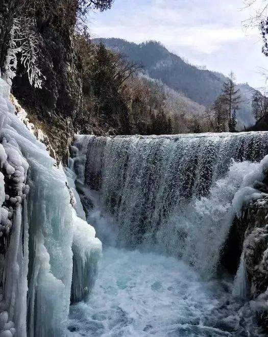 大峪溝的明珠——冰湖,已經(jīng)結(jié)成了厚厚的冰層,冰面上布滿了細(xì)碎的雪花,仿佛是一幅精美的畫卷。站在湖邊,可以清晰地看到冰層下的水流在緩緩涌動,仿佛在訴說著千年的故事。偶爾,有幾只水鳥掠過湖面,留下一串串歡快的鳴叫聲,為這寂靜的冰湖增添了幾分生機(jī)。