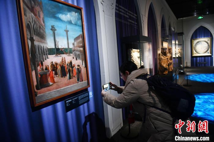 12月21日,“傳奇之旅:馬可·波羅與絲綢之路上的世界”展覽在四川博物院正式面向公眾開(kāi)放。圖為來(lái)自意大利威尼斯科雷爾博物館的一幅木板油畫(huà)吸引參觀者。中新社記者 張浪 攝