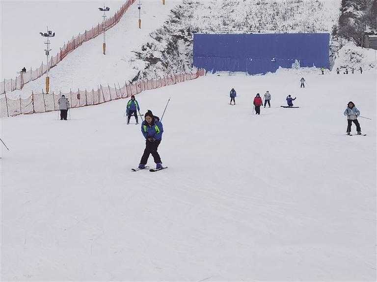 接著來到興隆山滑雪場,這里是冰雪運動愛好者的歡樂天地?;﹫鼋?jīng)理賈青云介紹,該滑雪場占地超400畝,擁有5條初、中級滑雪道,是中初級滑雪愛好者的樂園,今年全新打造的兩萬平方米豪華“戲雪樂園”更是引人注目。“開業(yè)不到一個月,已接待游客一萬多人,周末日均客流量超一千,平日也有四、五百人,滑雪場可同時容納2000人滑雪。”賈青云表示,滑雪場近期推出了優(yōu)惠活動,原價128元的門票現(xiàn)只需88元,包含滑雪服和存衣柜的使用。值得一提的是,經(jīng)過改造升級后的滑雪場加入了波西米亞風(fēng)格,設(shè)有拍照打卡地和咖啡廳,成為年輕消費者熱衷的網(wǎng)紅打卡點,游客在此不僅能滑雪,還能享受火鍋、烤肉等美食,體驗別樣的冬日休閑時光。
