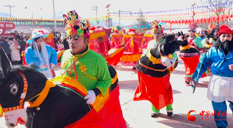 春節(jié)期間,華亭市各曲子戲班的演出由農(nóng)村的廣場到家庭院落,縣城的機關(guān)單位到大街小巷,隨處可見。曲子戲通常以吹拉彈唱、說春遛丑等角色,形成大場子、小場子、跑場子三種演唱形式,表演以極具華亭風情的念唱、秧歌小調(diào)、獅子旱船、民間舞蹈為主。生老凈丑競相登場,文武場面與大戲不相上下,表演風格獨特,濃濃的鄉(xiāng)土味瞬間會勾起人們對家鄉(xiāng)的熱愛之情。