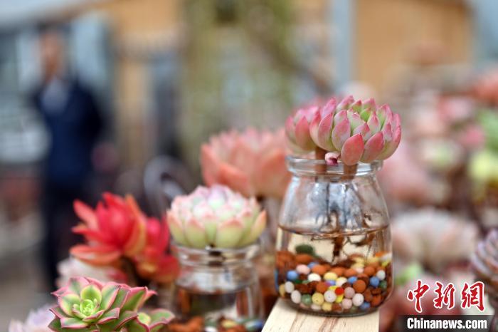 3月12日,在甘肅省蘭州市紅古區(qū)鑫源現(xiàn)代農(nóng)業(yè)科技示范園種植大棚內(nèi)種植的多肉植物。中新社記者 九美旦增 攝