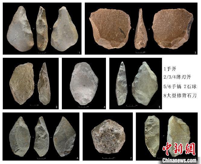 圖為河南汝州溫泉舊石器時代遺址出土的阿舍利技術(shù)工具組合。河南省文物考古研究院供圖