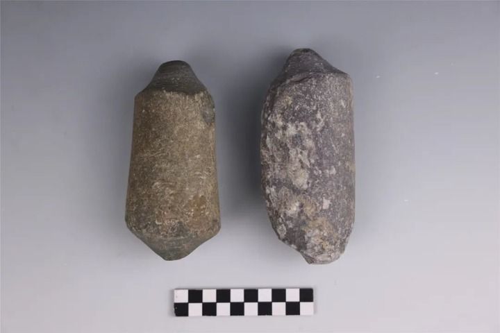 寺洼遺址內(nèi)出土的馬家窯類型石鉆、石環(huán)半成品。新華社發(fā)(寺洼遺址聯(lián)合考古隊(duì)供圖)