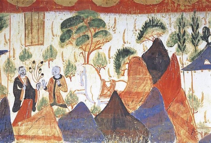 在敦煌壁畫中有關(guān)對弈的內(nèi)容較多。在莫高窟第454窟、第7窟壁畫中都有“弈棋圖”。兩幅圖的畫面有不少類似的地方:一是畫師較為突出棋盤的位置,兩幅壁畫中的棋盤都居中且形制相對巨大;二是畫面上的人物均為三人,兩人對弈,一人觀戰(zhàn),“觀棋不語真君子”;三是對弈者身后的景色都是天朗氣清、遠(yuǎn)山含黛。據(jù)說,一天,北宋大文豪蘇東坡與摯友黃庭堅(jiān)正在松樹底下弈棋。一陣風(fēng)吹來,松果掉進(jìn)棋盤。蘇東坡隨即吟道:“松下圍棋,松子每隨棋子落。”黃庭堅(jiān)馬上回答道:“柳邊垂釣,柳絲常伴釣絲懸。”雅趣十足。其實(shí),棋局里的一動(dòng)一靜、一招一式無不需要謹(jǐn)小慎微、穩(wěn)扎穩(wěn)打。而對弈時(shí)的當(dāng)斷則斷、示假隱真、有效合作等戰(zhàn)術(shù)不僅是對弈的智慧,也是人生的哲理吧。