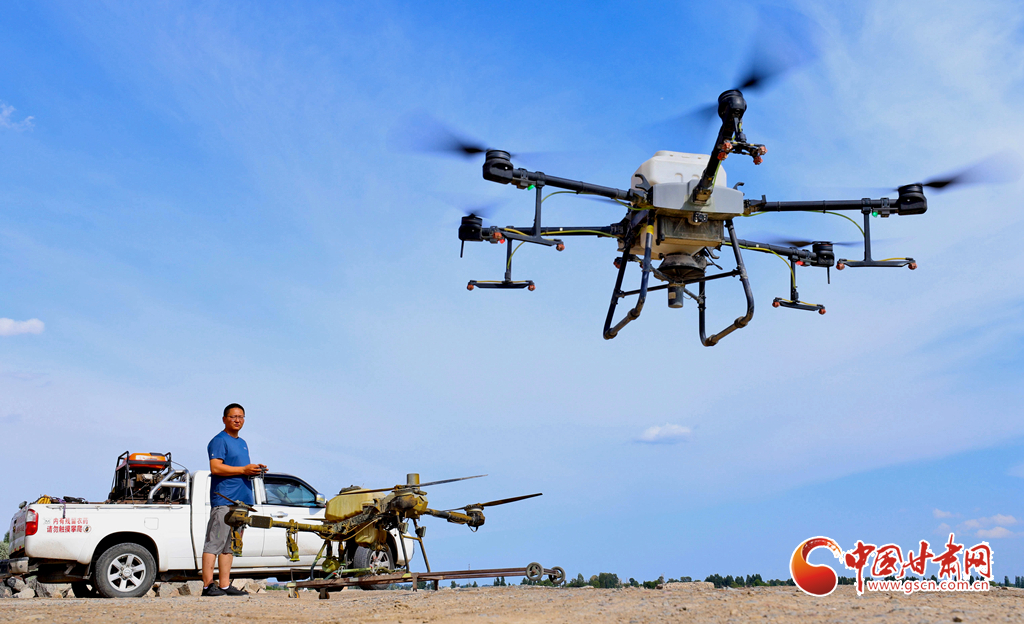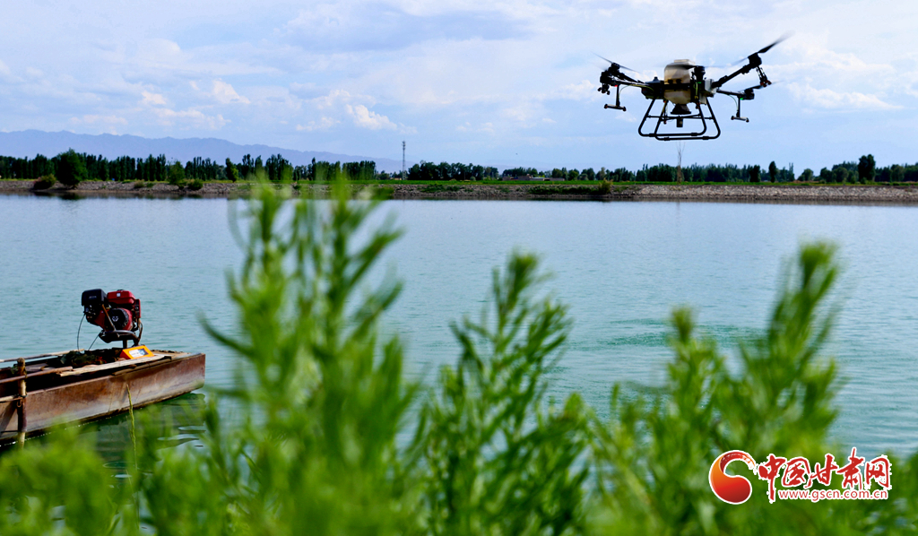 6月24日,在高臺(tái)縣夾溝湖水庫(kù)螃蟹養(yǎng)殖基地,無人機(jī)操作手啟動(dòng)設(shè)備,載滿飼料的無人機(jī)沿預(yù)設(shè)航線在800多畝螃蟹養(yǎng)殖基地上空精準(zhǔn)投喂。