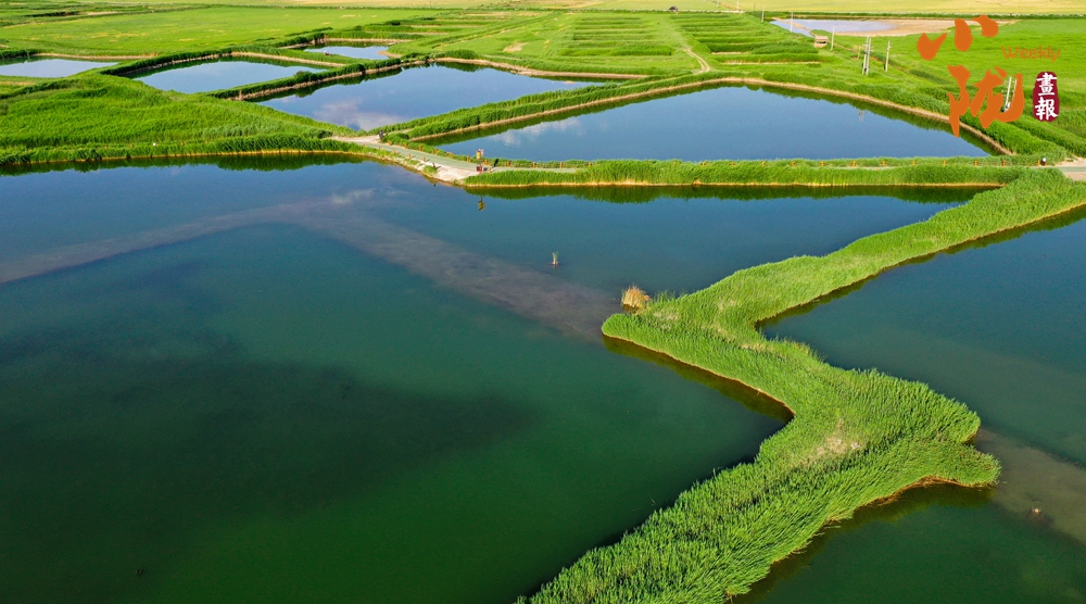 湖邊,蘆葦綠意盎然,隨風(fēng)泛起綠色的波浪,染翠了整個(gè)草湖。每當(dāng)風(fēng)兒掠過,這些層層疊疊的綠意散發(fā)出沁人肺腑的草木清香。在這樣炎熱的日子里,看看這樣清澈的綠,夏天好像變得清涼起來。