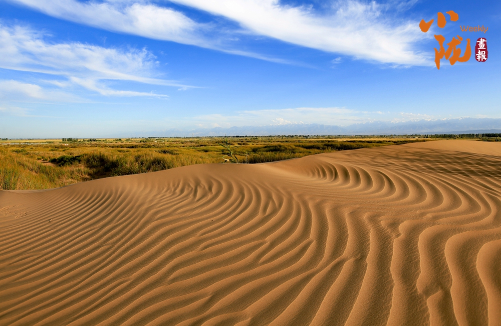 站在綠洲與大漠的結(jié)合處,觀賞四方風(fēng)景,眼前奇異的景致讓人驚嘆萬分:一邊是莽莽蒼蒼、雄渾博大、無邊無際的大漠海洋,一邊是郁郁蔥蔥、娟秀嫵媚的綠洲碧野。這是大自然杰出的造化,這黃色與綠色之間沒有任何過渡,兩色卻形成鮮明的對(duì)比,宛如畫家手下的色盤,黃綠分明、對(duì)比強(qiáng)烈而又和諧統(tǒng)一,令人叫絕。