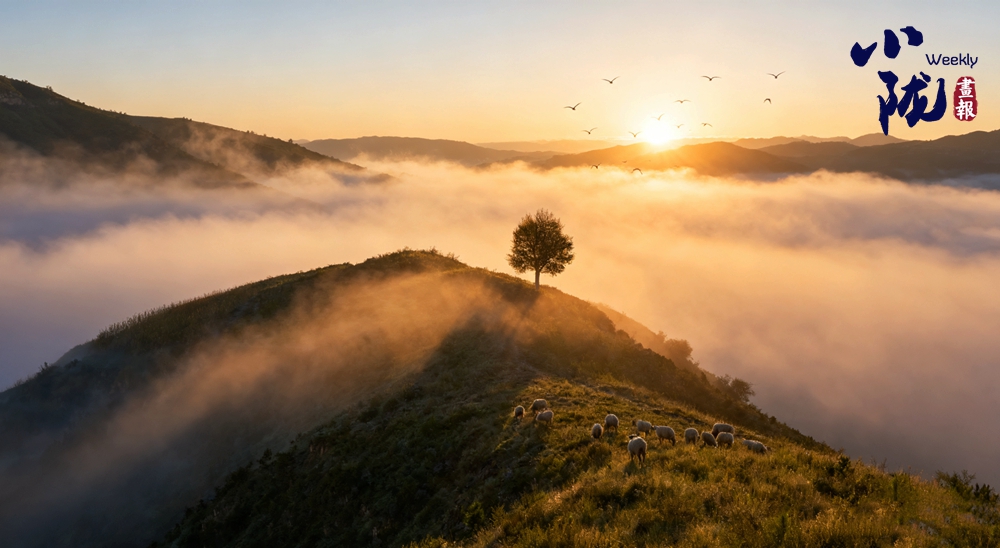晨光初露時(shí),薄霧浮動(dòng)于溝壑之間,黃土塬的輪廓在光線中起伏,與飛翔的鳥(niǎo)兒、走過(guò)坡地的羊群與塬面草色,構(gòu)成一幅絢麗的畫(huà)卷。