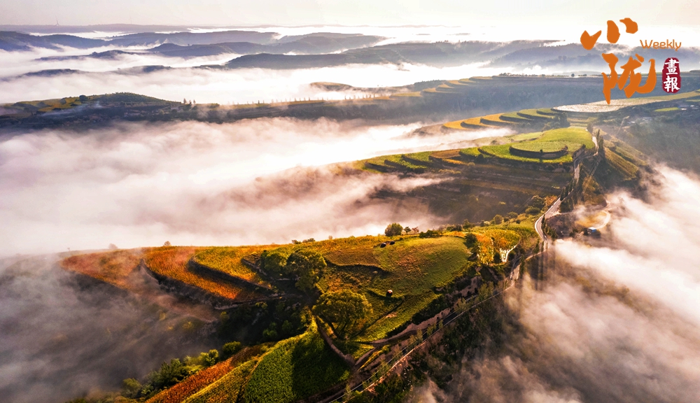 清晨,云海、山嶺與樓宇,恍如人間仙境一般。這不僅是視覺(jué)的盛宴,更是對(duì)黃土塬生態(tài)之美的深情禮贊:昔日這片貧瘠荒涼的土地,眼下已是生機(jī)勃發(fā)、綠意盎然。