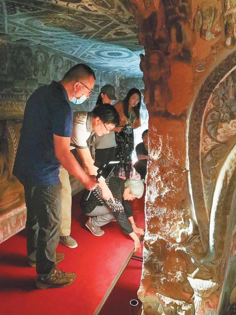 考古報告此前多年難以出爐還與技術(shù)條件不成熟有關(guān)。“最早的時候,我們誰見過電腦呀,繪圖用的是‘小平板’,測量用的是垂球、三角板。測量的人爬上爬下,繪圖的人說往左往右……又慢又不準。洞窟不像我們住的房子那么四四方方,洞窟里不是壁畫就是塑像,又不能搬動,測量先就是個大難題。”直到近些年,三維激光掃描測量儀器問世、高精度數(shù)據(jù)采集、數(shù)字攝影、用電腦軟件精確繪圖等技術(shù)成熟,才使全面、高效、非接觸地獲取洞窟三維數(shù)據(jù)、高清圖像并進行虛擬拼合與重建成為可能。