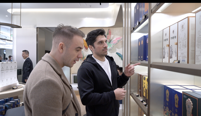 除了眾多國際知名品牌外,人氣潮玩周邊和福州特色文創(chuàng)產(chǎn)品柜臺人氣最高。來自中東的網(wǎng)紅達人Zein說,他看到了很多手工的非遺工藝品,如軟木畫、脫胎漆器,這些精巧的非遺技藝讓他震驚。