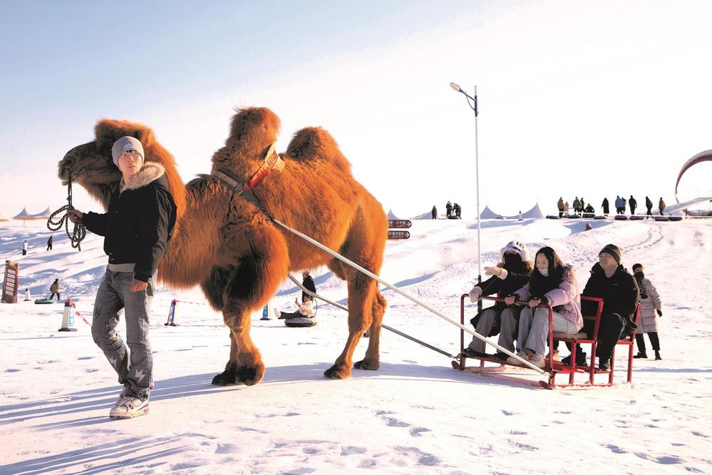 連日來(lái),眾多游客在張掖國(guó)家沙漠體育公園冰雪嘉年華體驗(yàn)冰雪樂(lè)趣,冰雪滑道、碰碰球、雪地摩托車、駱駝雪車等多樣的冰雪活動(dòng)為市民游客獻(xiàn)上冬日文旅盛宴。 李自海 攝