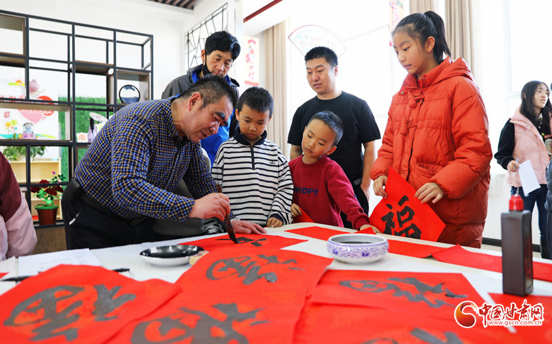 春節(jié)臨近,民樂縣組織群眾文化志愿者服務(wù)隊(duì)開展“翰墨迎春”公益文化活動(dòng),志愿者現(xiàn)場揮毫潑墨書寫春聯(lián),為群眾書寫春聯(lián)和“福”字,讓群眾在家門口享受“文化大餐”,迎接新春佳節(jié)的到來。