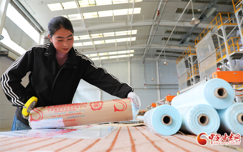 2月25日,在民樂工業(yè)園區(qū)內(nèi)一地膜生產(chǎn)車間,工人們正加足馬力生產(chǎn)地膜,助力春耕春播。