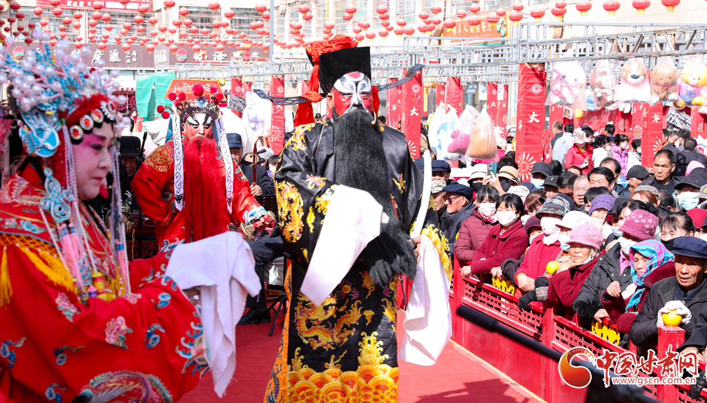 3月3日,張掖市臨澤縣金澤廣場(chǎng)上,群眾吼秦腔。