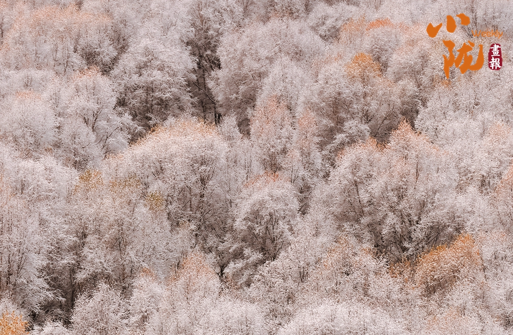 山腰墨綠色的松林,松枝上掛滿了毛茸茸的雪凇。那不是雪,那是大自然最細(xì)膩的工筆,描繪出的雪凇奇觀。風(fēng)起時(shí),細(xì)碎的冰晶簌簌飄落,折射出萬千銀光,如夢似幻。